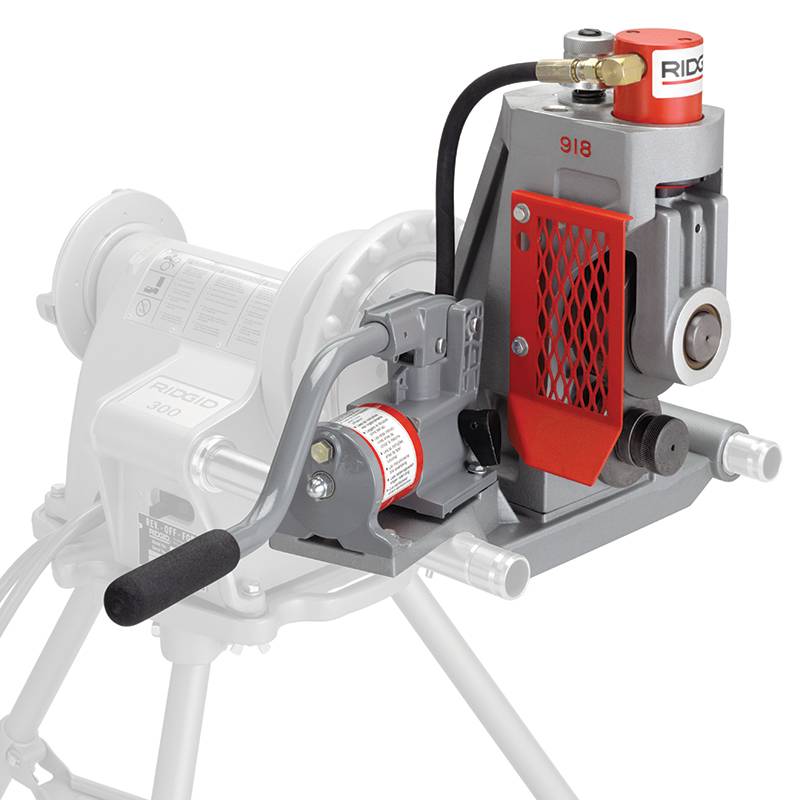 Устройство для накатки желобков модели RIDGID 918 оснащено мощным 15-тонным гидроцилиндром и представляет собой компактный, удобный для транспортировки блок. Поскольку установить и эксплуатировать модель 918 может и один человек, он идеальна как для использования на рабочих объектах, так и в цехах. Разработанная для обеспечения максимальной универсальности,  модель 918 способна накатывать желобки на стальных трубах до 12". Замена накатывающего и ведущего ролика осуществляется в считанные секунды. Уникальный фиксатор шпинделя помогаетосуществить замену роликов при помощи предоставленного инструмента.